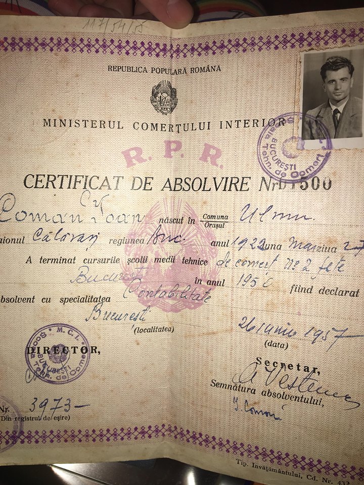 Fig. 5. Certificatul de absolvire al Scolii Medii de Comert